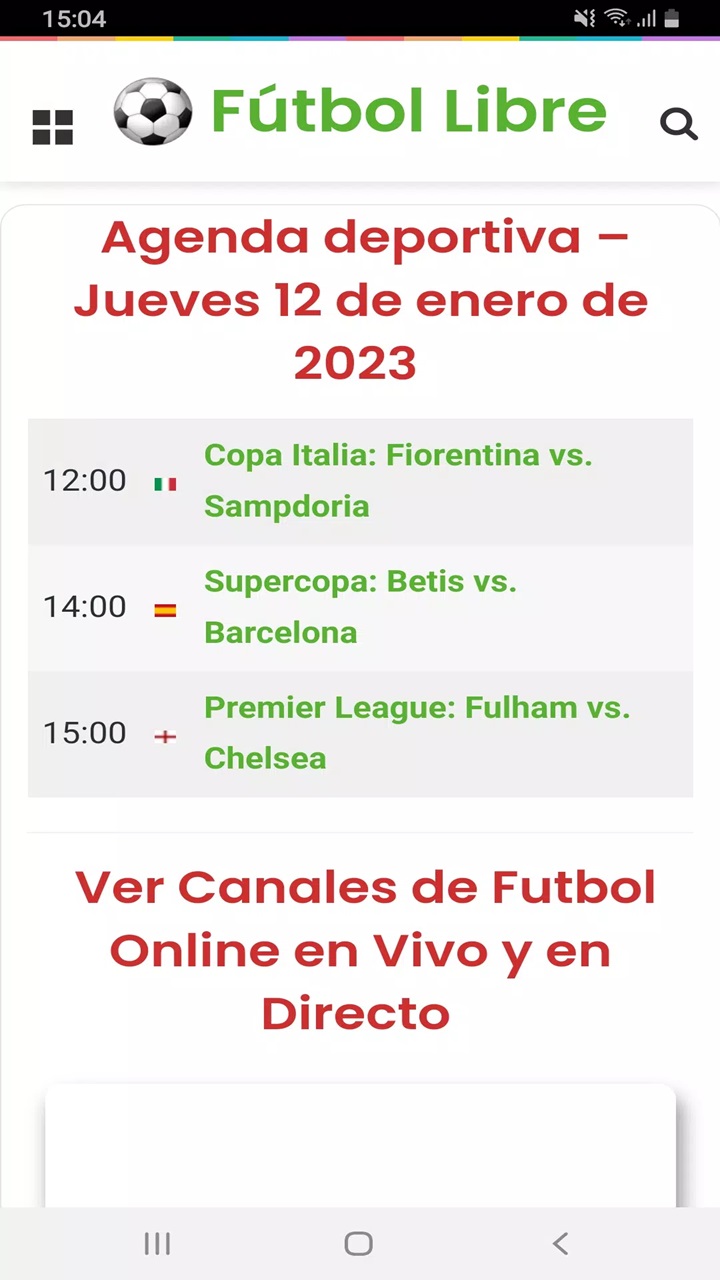 The interface of Futbol Libre is designed to be straightforward and user-friendly. Upon opening the app, users are greeted with a clean and intuitive homepage that displays ongoing and upcoming matches. The main screen features a search bar for easy access to specific games or teams, and users can navigate through various tabs like Live Matches, Upcoming Games, and Highlights.
